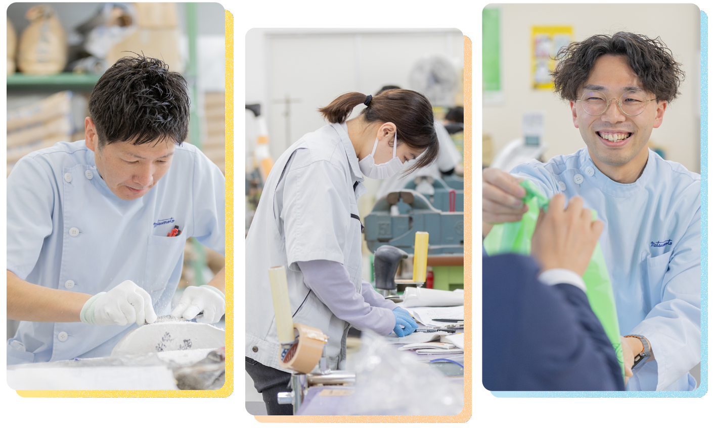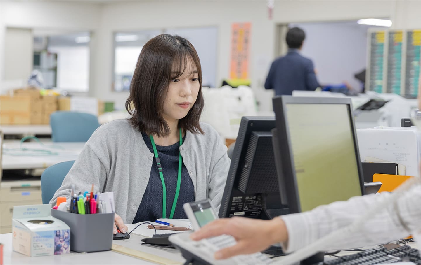 営業・製造・事務の部門に分かれ、それぞれ専門の分野で力を発揮しています。